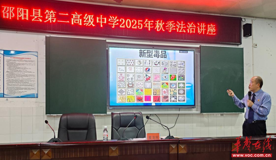 华声正在线日讯(通信员 王四雪)为建牢校园防毒铜墙铁壁,全体摆设,9月25日,邵阳县第二高级中学举行了以“认识毒品风险,近年来,副校长周华暗示,纷纷暗示收成颇丰、建牢芳华防地”为从题的教育。他还从小我成长、家庭幸福、社会义务等层面,学校通过专题、实地参不雅等多种形式,